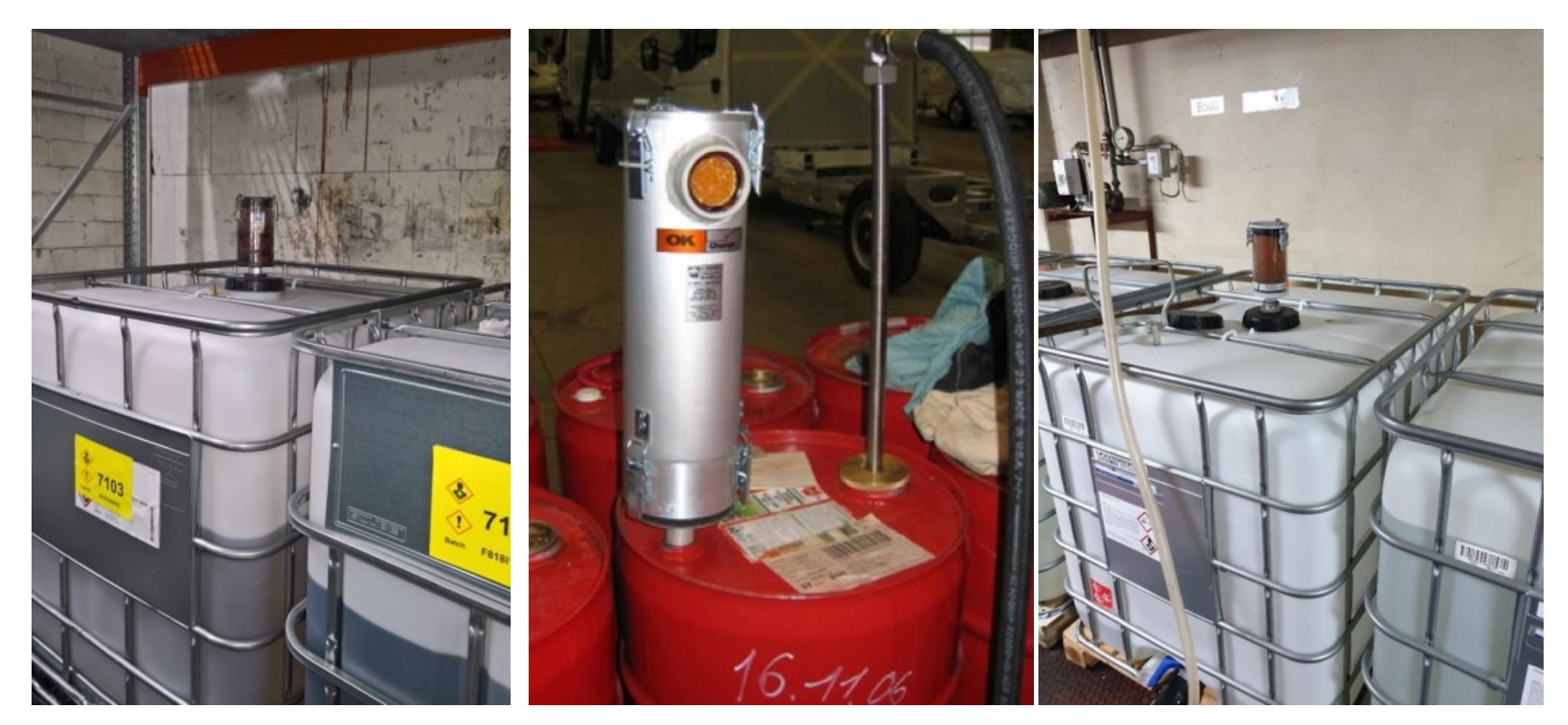 | Polyole Medium: Polyole Behälter: 1.000 ltr IBC Betrieb: häufigere Entnahme, Entleerung wöchentlich -> Verwendung Adsorber VV 3M-R |