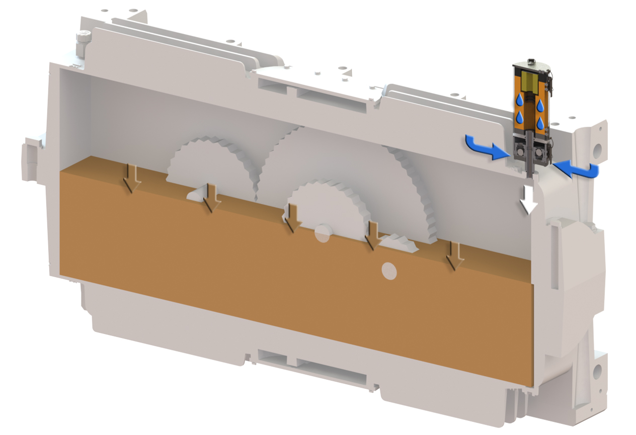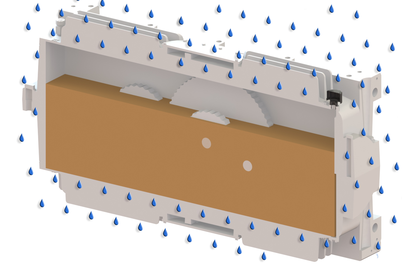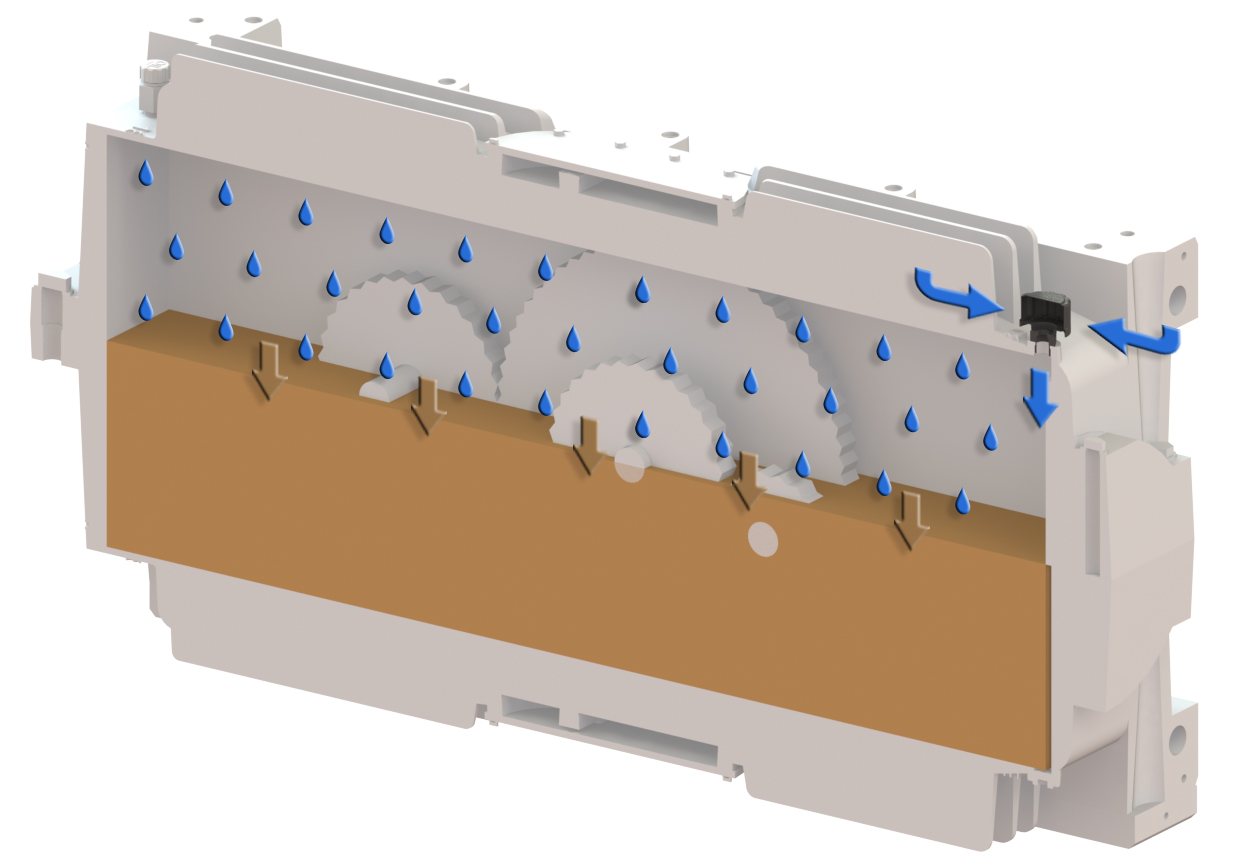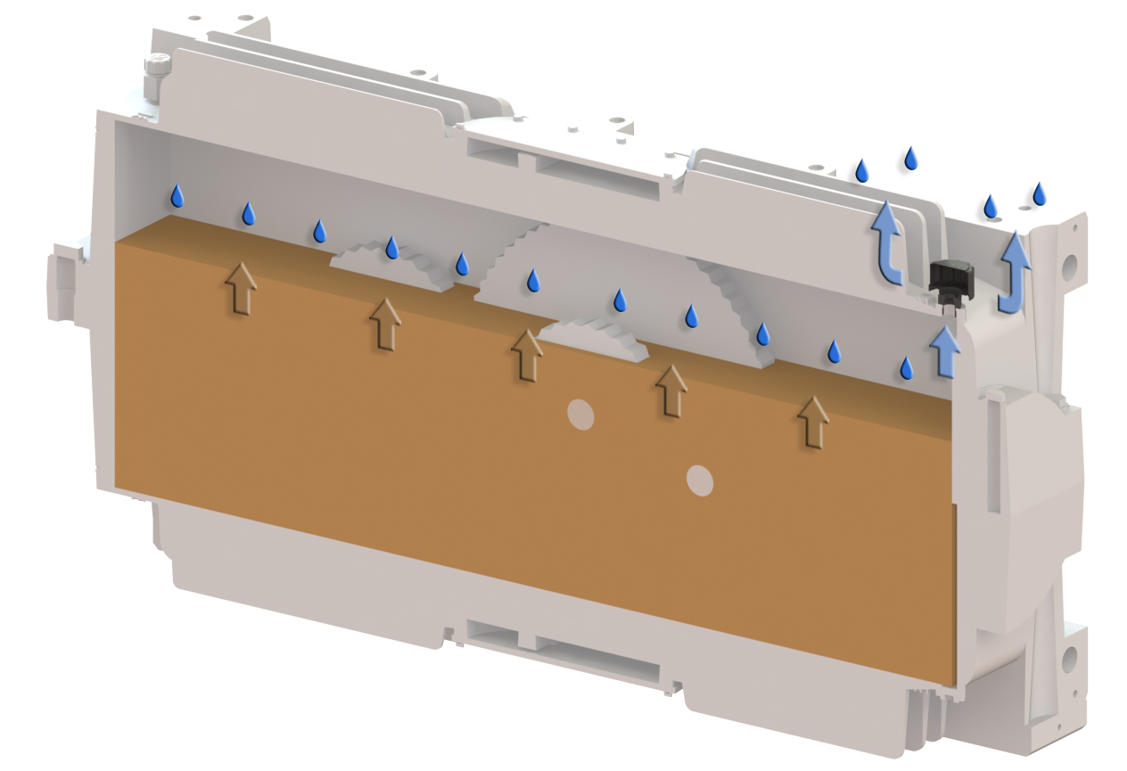 Abkühlung der Umgebungsluft unter Taupunkt -> Kein Kondenswasser im Inneren -> Keine Wassertropfen -> Kein Wasser im Getriebe |