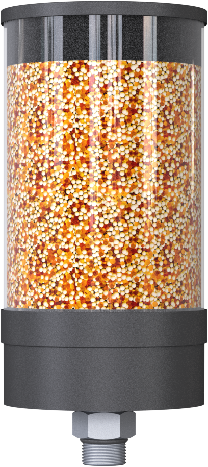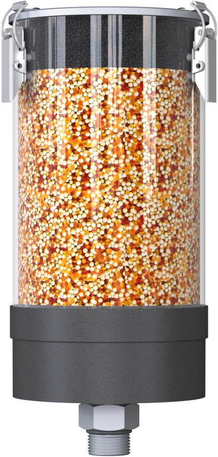 Feuchte Zuluft wird getrocknet und gefiltert. Der Tank kann atmen und die trockene Zuluft sorgt für eine konstante Qualität des Lagermediums.
