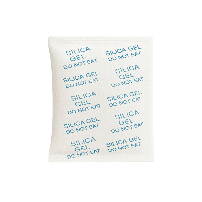 Es gibt auf dem Markt Trockenmittelbeutel, die einen blauen Aufdruck haben. Dieser dient als indikative Information zur umgebenden Luftfeuchtigkeit, sagt aber eigentlich nichts über die wirkliche Restaktivität des darin enthaltenen Trockenmittels aus. Daher verzichten wir auf solche Angebote.