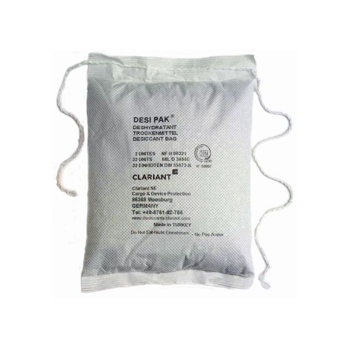 Unsere DESI PAK® Trockenmittelbeutel entsprechen den Vorgaben gängiger Normen wie DIN 55473, MIL etc.. Die Beutel sind sehr robust und enthalten hochaktiven Trockenton Bentonit. Der Hüllstoff GDT (ein Faservlies) ist wasserdampfdurchlässig und von hoher Festigkeit. Mit diesen hoch aktiven Trockenmittelbeuteln kann die relative Luftfeuchtigkeit in geeigneten Behältern oder Klimaschutzverpackungen unter 40 % gesenkt werden.